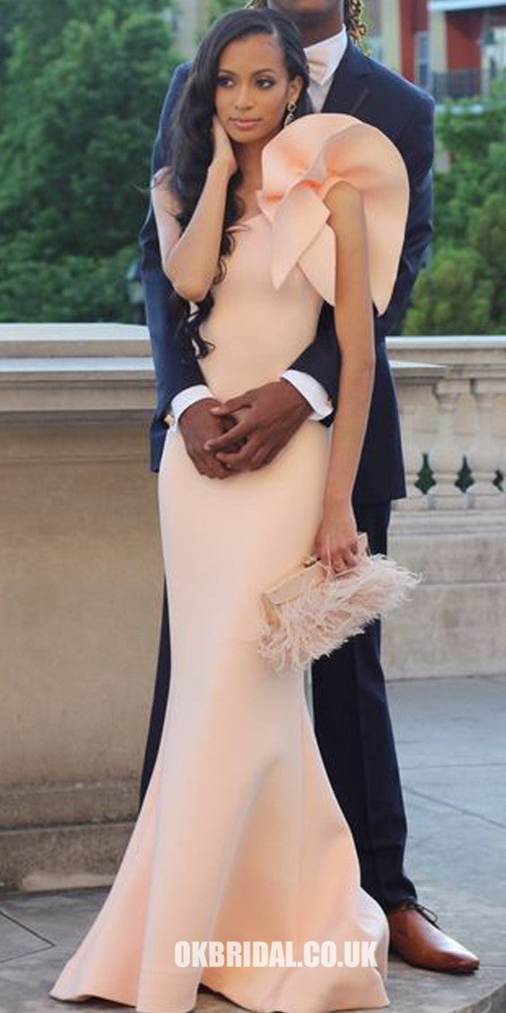 Satin One Shoulder Backless Mermaid Sleeveless Long Prom Dresses, KX1623