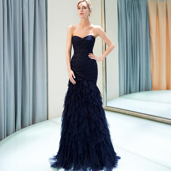 Navy Blue Mermaid Tulle Pleated Backless Cheap Sweetheart Prom Dresses, FC1783 Navy Blue Mermaid Tulle Pleated Backless Cheap Sweetheart Prom Dresses, FC1783