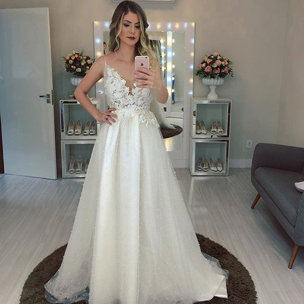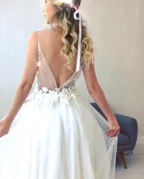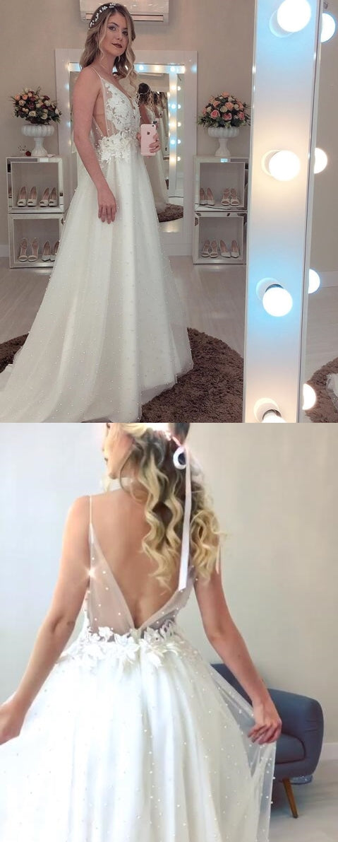 Gorgrous A-Line Satin Backless Lace Floor-Length Tulle Charming Wedding Dress, FC1558 Gorgrous A-Line Satin Backless Lace Floor-Length Tulle Charming Wedding Dress, FC1558