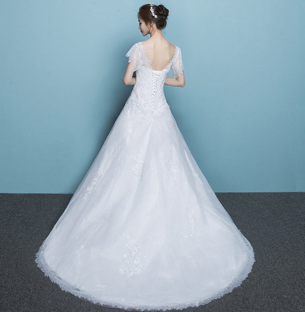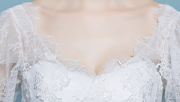 Long Wedding Dress, Lace Wedding Dress, Tulle Bridal Dress, 1/4 Sleeve Wedding Dress, Backless Wedding Dress, Sequin Wedding Dress, A-Line Wedding Dress, LB0518