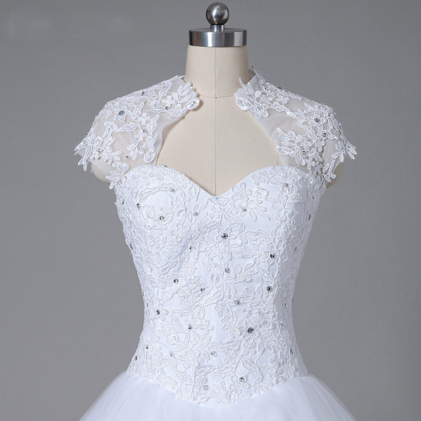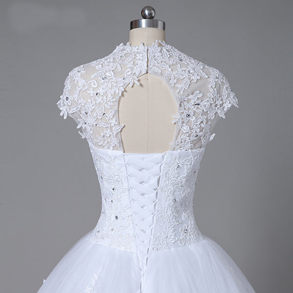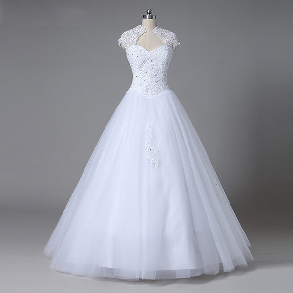 Long Wedding Dress, Hot Sale Wedding Dress, Lace Bridal Dress, Cap Sleeve Wedding Dress, Beading Wedding Dress, Tulle Wedding Dress, Applique Wedding Dress, LB0374