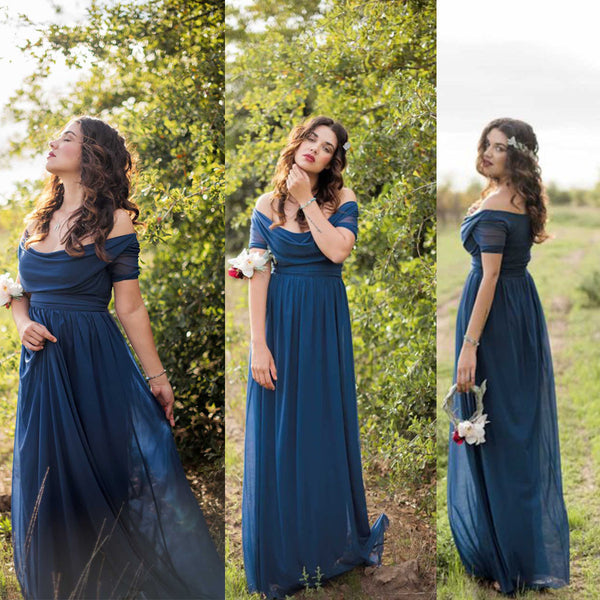 Short Sleeve Off Shoulder Long Charming Wedding Bridesmaid Dresses, WG343
