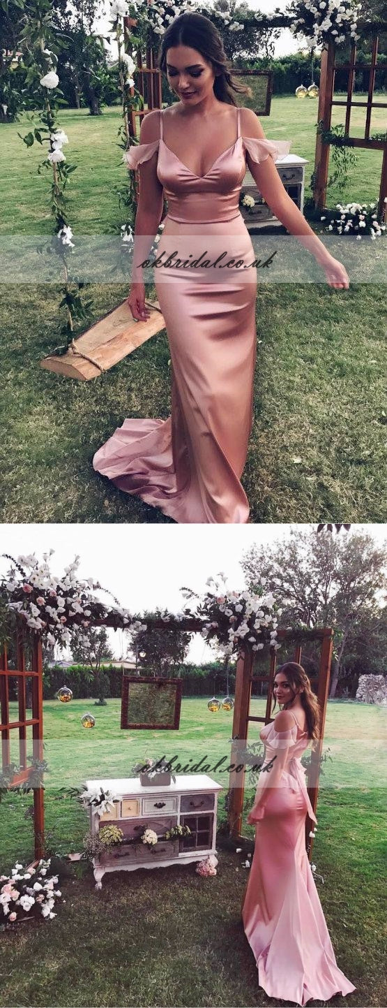 Popular Spaghetti Straps Long Elegant Prom Dresses, Sexy Mermaid Soft Satin Prom Dress Gown, KX191