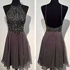 Dark grey sparkly special vintage open back sexy popular homecoming prom dress