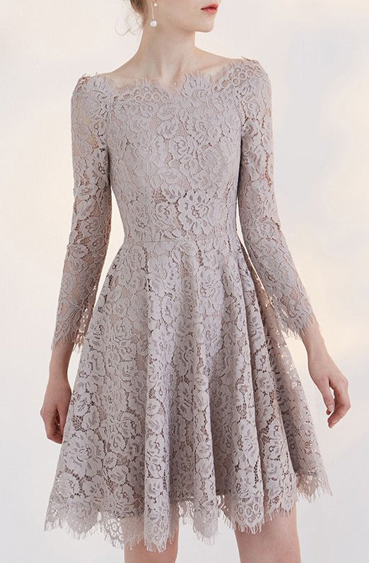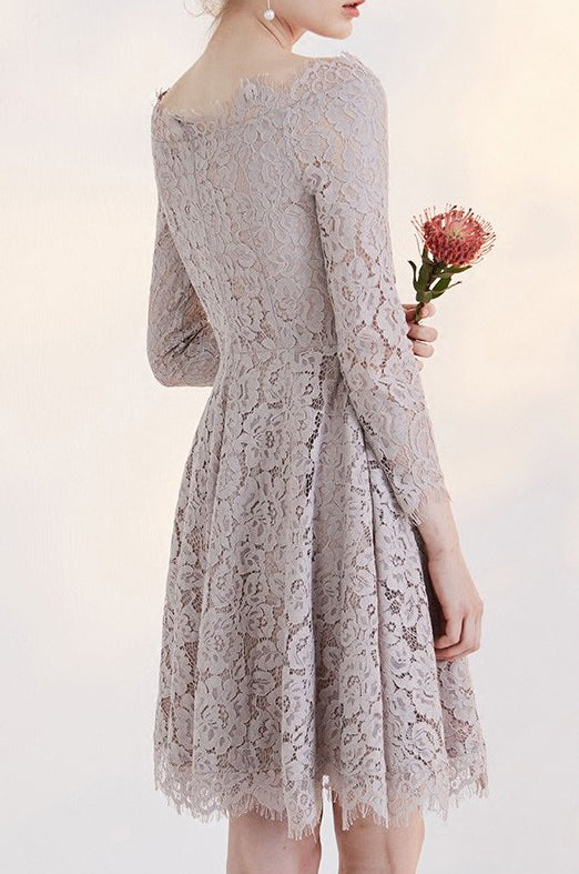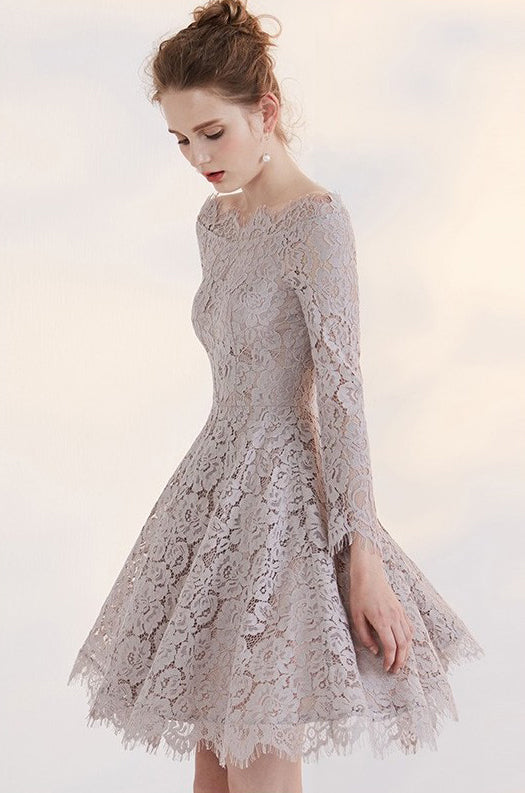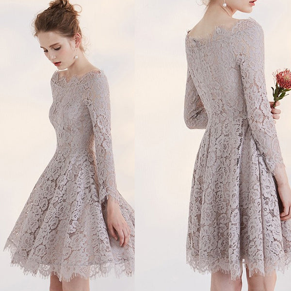 Off Shoulder Long Sleeve Lace Junior School Dress, Knee-Length Homecoming Dress, LB0723 Off Shoulder Long Sleeve Lace Junior School Dress, Knee-Length Homecoming Dress, LB0723