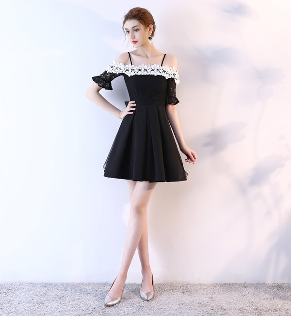 The black lace simple homecoming dresses are fully lined, 4 bones in the bodice, chest pad in the bust, lace up back or zipper back are all available, total 126 colors are available.