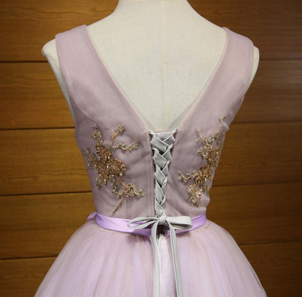 Short Homecoming Dress, Tulle Homecoming Dress, V-Neck Homecoming Dress, Beading Junior School Dress, Applique Graduation Dress, Knee-Length Homecoming Dress, LB0596