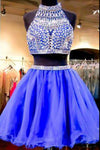 Sexy 2 pieces beaded Royal Blue short homecoming prom dresses
