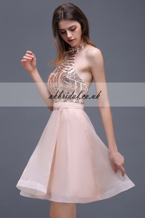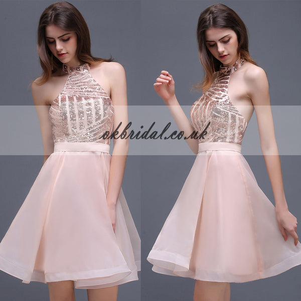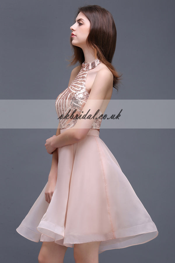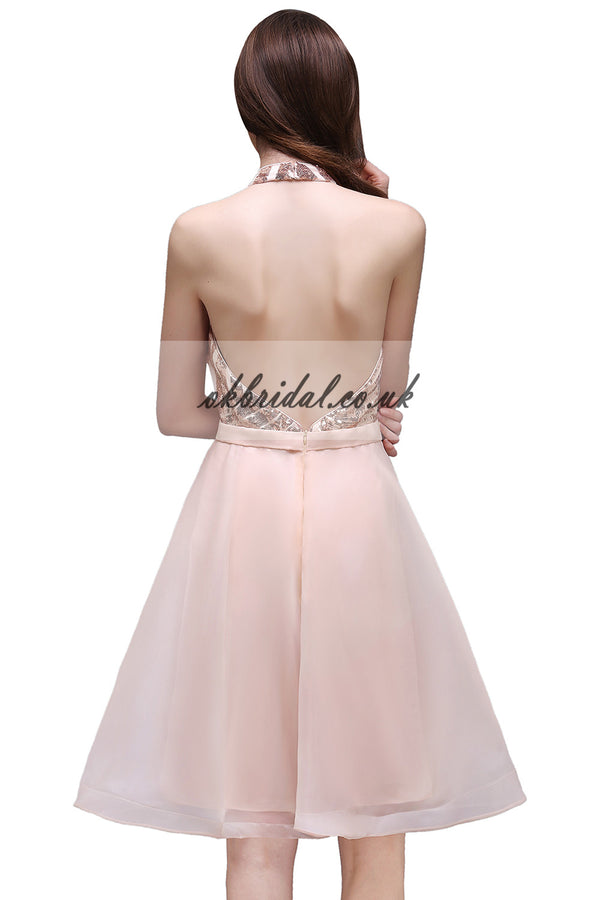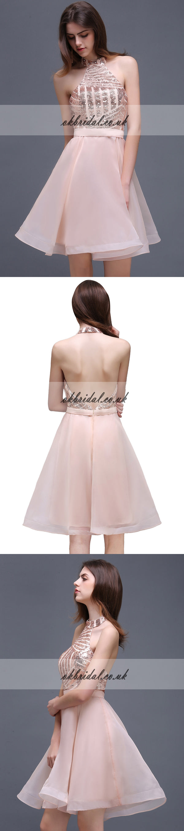 Halter Sequin Homecoming Dress, Backless Organza Homecoming Dress, Knee-Length Homecoming Dress, KX128Halter Sequin Homecoming Dress, Backless Organza Homecoming Dress, Knee-Length Homecoming Dress, KX128