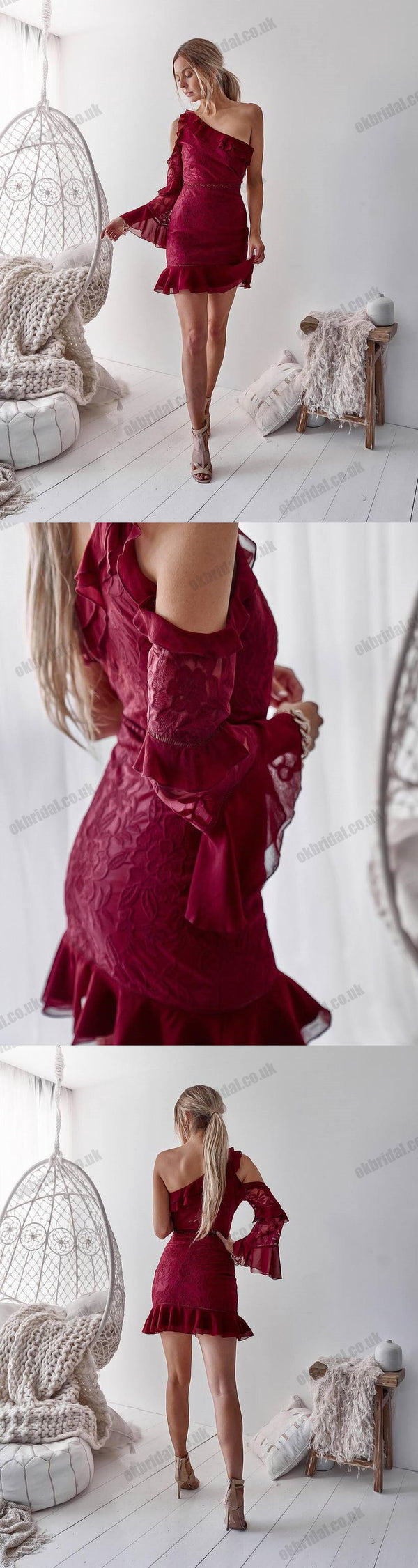 One Shoulder Lace Homecoming Dresses, Sheath Tulle Homecoming Dresses, KX1510 One Shoulder Lace Homecoming Dresses, Sheath Tulle Homecoming Dresses, KX1510